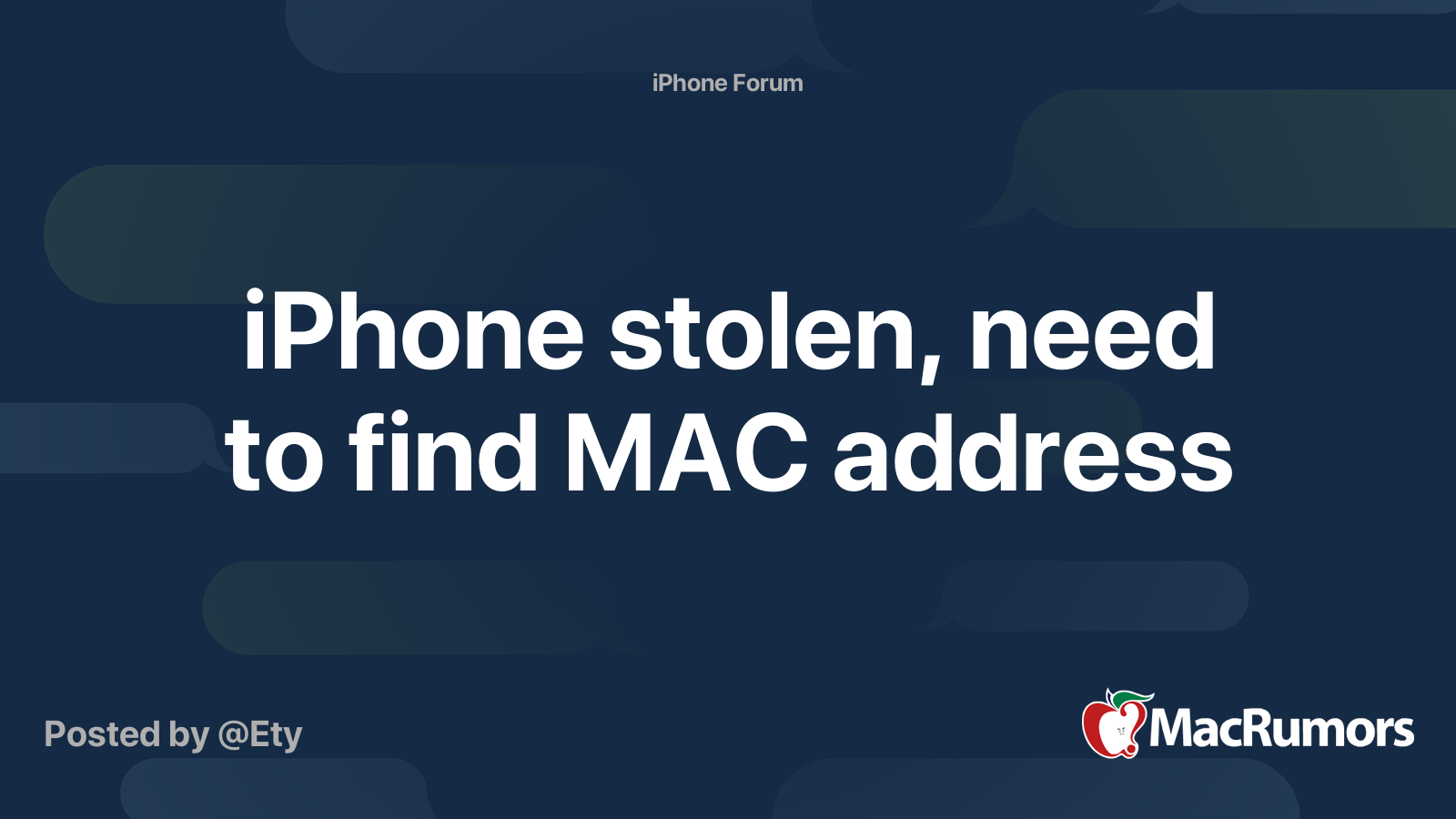 Iphone Stolen Need To Find Mac Address Macrumors Forums